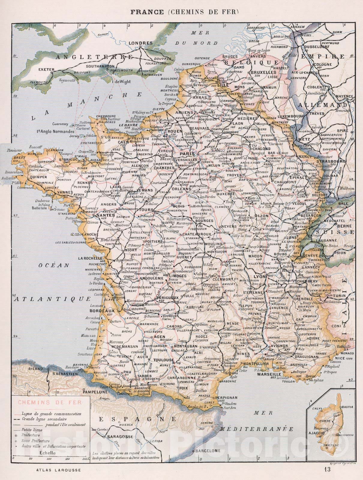 Historic Map : World Atlas Map, France (Chemins de Fer). 1900