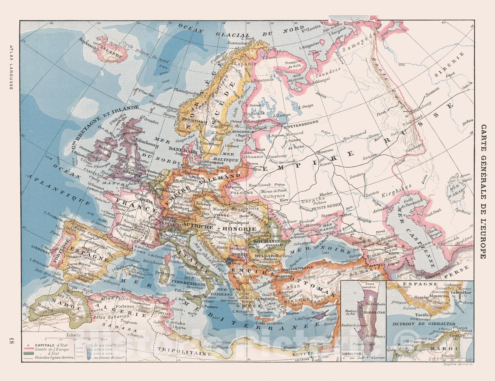 Historic Map : World Atlas Map, Carte Generale de l’Europe. 1900