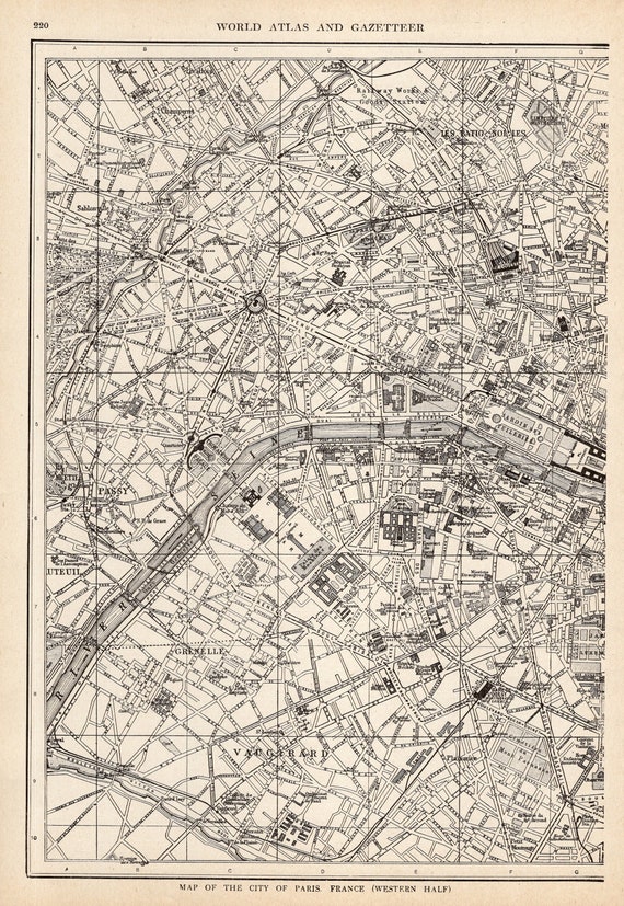 1914 Antique City MAP of PARIS Vintage Paris Street Map Gallery
