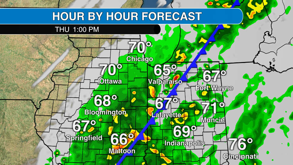 Showers and storms likely in Illinois and Indiana Thursday as a